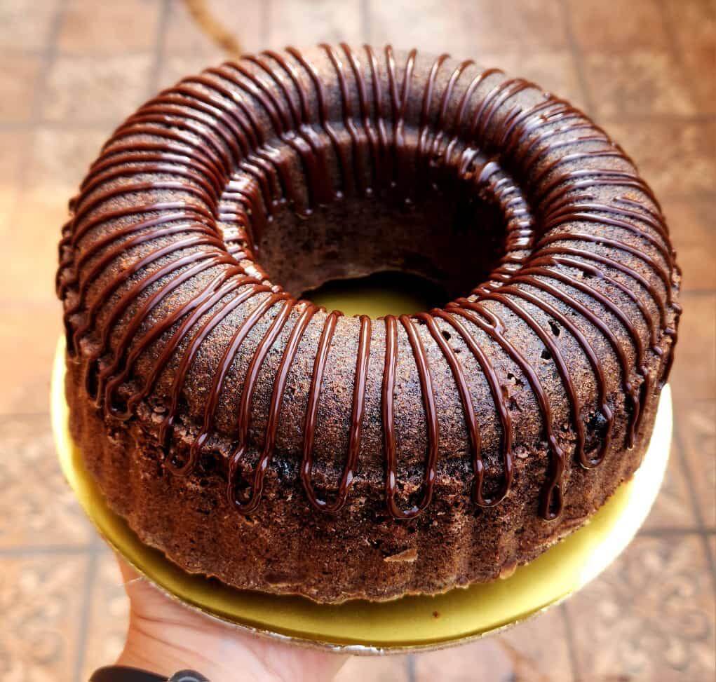 Wholewheat Banana Chocolate chip, with chocolate sauce on top (made with jaggery) – Eggless